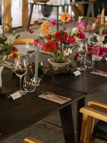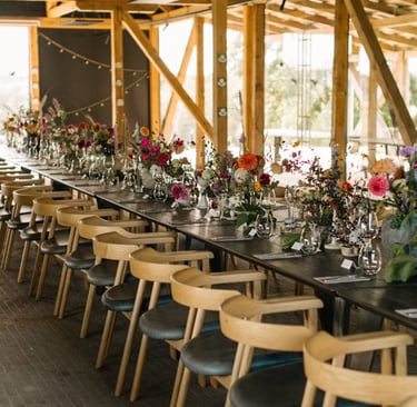 Cada boda tiene su propio lenguaje. Aquí no tendría sentido una decoración blanca clásica ni flores demasiado pulidas.